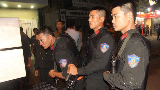 Lực lượng cảnh sát được trang bị vũ khí để bao vây ngôi nhà nơi nghi phạm Sơn cố thủ
