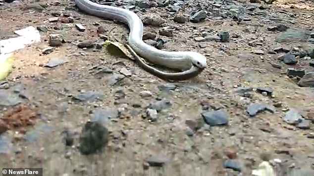 Theo Daily Mail, đoạn video đăng tải trên internet cho thấy cảnh một con rắn bạch tạng đang ăn thịt đồng loại. Video được quay gần ngôi đền ở Bhadrak, phía đông bang Odisha, Ấn Độ.