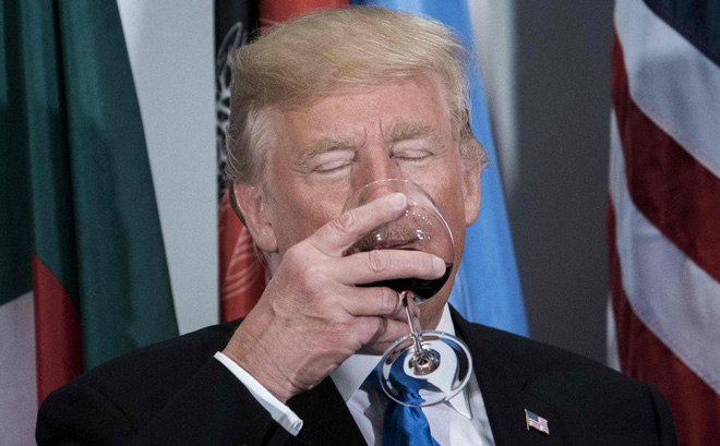 Ông Trump uống nước ngọt bằng ly uống rượu.
