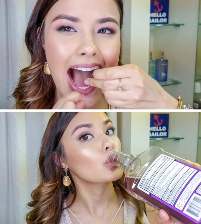 Bên cạnh việc đánh răng từ 2 - 3 lần mỗi ngày bạn nên sử dụng chỉ nha khoa và nước súc miệng sau khi ăn để đảm bảo vệ sinh răng miệng. Việc này sẽ giúp hạn chế tình trạng răng ố màu do uống trà, cà phê... đồng thời đảm bảo hơi thở luôn thơm tho.