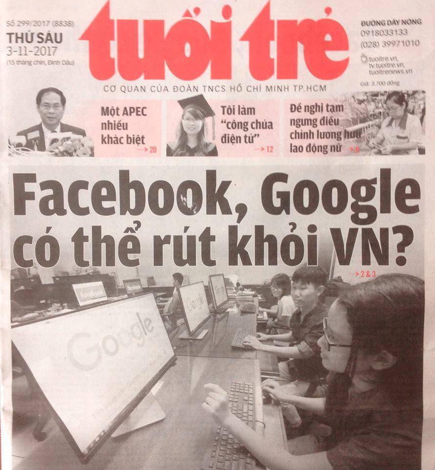Theo hãng tin Reuters hôm Thứ Tư (ngày 10 tháng 10), bản dự thảo này cho thấy các công ty Internet như Facebook và Google đã thất bại trong nỗ lực khuyến cáo Việt Nam không nên siết chặt việc thực thi các đòi hỏi về mở văn phòng và đặt máy chủ trong nước.