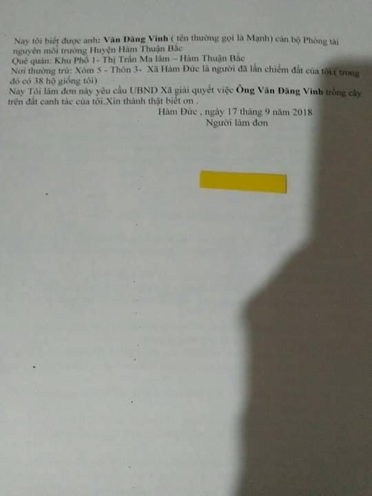 Đất rẫy thôn 3 Hàm Đức, Hàm Thuận Bắc, Bình Thuận đang rất nóng. Có một cán bộ phòng tài nguyên môi trường huyện Hàm Thuận Bắc ra hù dân luôn. Dữ liệu quá trời luôn mà ko biết viết như thế nào cho hợp lý để kêu gọi các luật sư nhà báo về giúp dân.