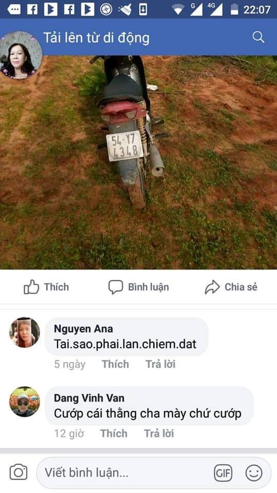 Ngày 11 tháng 9 năm 2018 Tôi cùng đi với 38 người đi vào đất rẫy của mình chuẩn bị sản xuất( trỉa dưa muộn) thì có anh: Văn Đăng Vinh xác nhận là đất của anh mua nhưng 38 hộ của xóm 5 thôn 3 chưa hề bán cho ai chúng tôi có hỏi: Chúng tôi không bán thì anh mua của ai, tên gì chúng tôi trình báo chính quyền. Anh Vinh không trả lời. Chúng tôi tiếp tục hỏi: Anh có tiền mua thì sẽ có người bán sợ gì mà anh không nói tên. Anh trả lời: Tôi mà sợ ai.