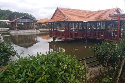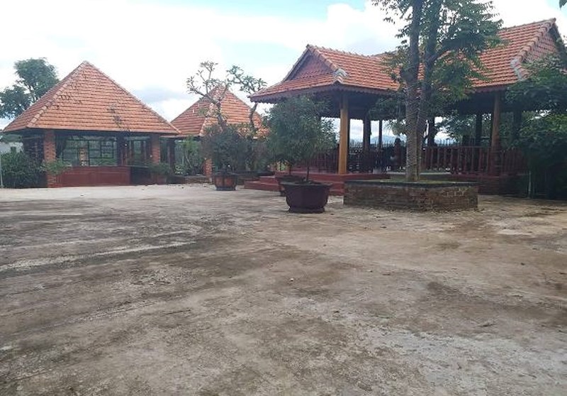 Đây là một công trình "khủng", có 2 cổng chính, quy mô rất hoành tráng. Bao quanh công trình là tường rào được xây dựng kiên cố. Bên trong có khoảng 15 căn nhà lớn nhỏ, khu vui chơi thiếu nhi và hàng loạt công trình phụ như ao, hồ, đường đổ bê tông, khu trồng cây cảnh... Hầu hết các căn nhà đều được xây bằng gạch và làm bằng gỗ tự nhiên, mái lợp ngói. Đặc biệt, rất nhiều bộ bàn ghế làm bằng gỗ nguyên khối được chủ nhân bài trí hoành tráng trong các căn nhà.