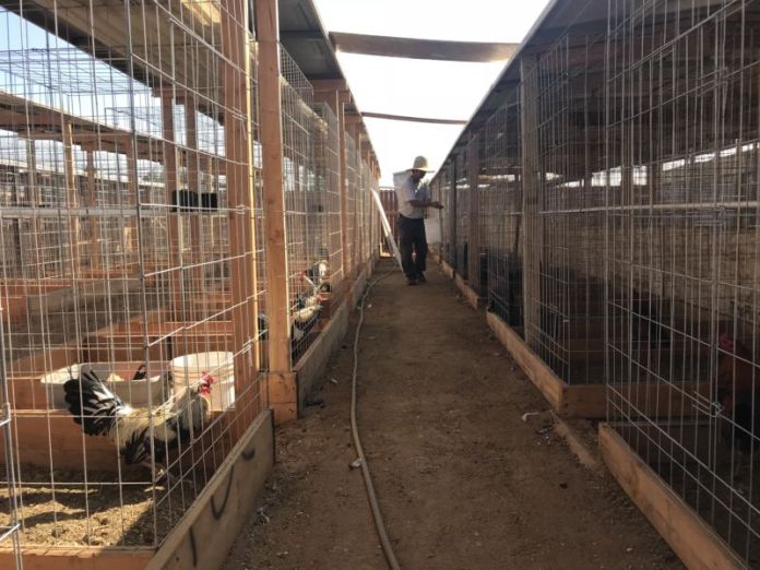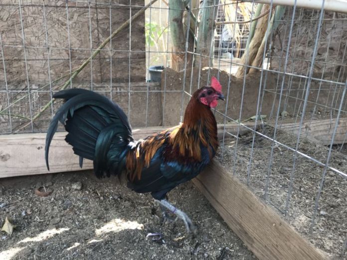 Gà Jap lai Lieper trong trại gà của anh Tuấn Nguyễn. (Hình: Thanh Long/Người Việt)