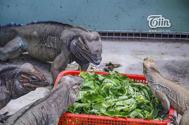 Ngoài rau muống, rau cải, những chú rồng Nam Mỹ còn được cho ăn thêm các hạt bổ sung.