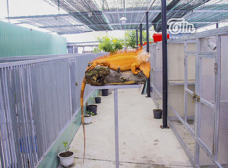 Không gian 500m2 được chia thành nhiều chuồng nhỏ để nuôi rồng Nam Mỹ.