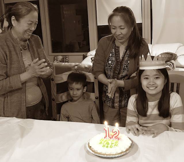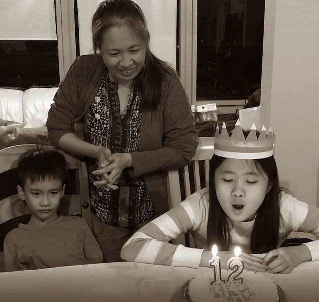 Hôm qua là sinh nhật 12 tuổi của Nấm. Buổi tối vợ chồng tôi đến chia vui cùng Nấm và gia đình. Bữa cơm chiều và tiệc nhỏ mừng sinh nhật em chỉ vỏn vẹn mươi người, nhưng thật gần gũi và ấm cúng. Chỉ bé Gấu còn hơi mệt vì chưa lấy lại sức khoẻ hoàn toàn, nên hơi 'nhỏng nhẽo' với mẹ và với bà Ngoại.