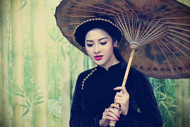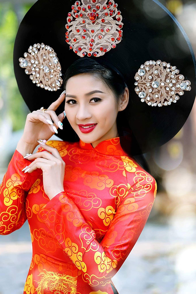 Không chỉ chụp ảnh nude, Thái Nhã Vân cũng khá dịu dàng, nữ tính khi diện áo dài truyền thống.