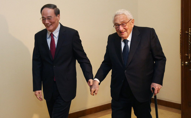 Ông Vương Kỳ Sơn (trái) và ông Henry Kissinger. Ảnh: Tân Hoa Xã