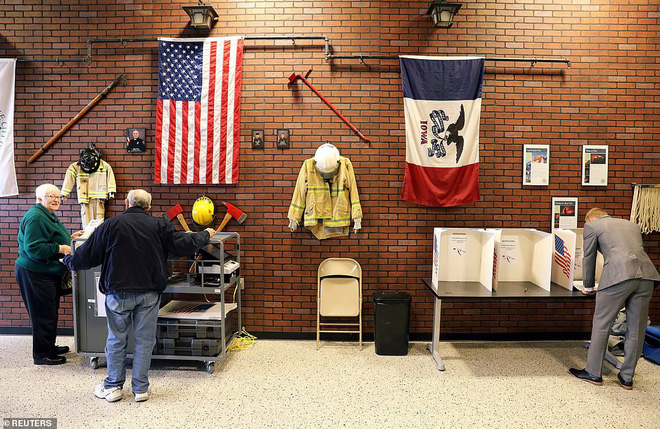 Cử tri bỏ phiếu tại sở cứu hỏa ở Iowa. Ảnh: Reuters