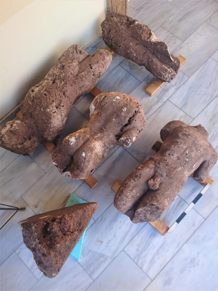 Cho đến nay, tổng cộng có bốn bức tượng đá vôi to như người trong tình trạng rất tốt đã được khai quật, bên cạnh một đế tượng hình tam giác.