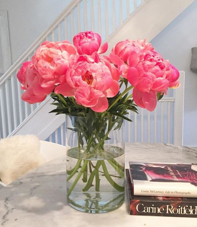 Cô thường xuyên lựa chọn những bông hoa màu sắc rực rỡ để nổi bật trong ngôi nhà tông trắng của mình.