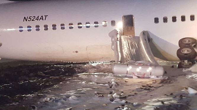 Lúc 2h53’, chiếc Boeing 757-200 dần hạ độ cao nhưng bất ngờ bay quá đường băng, vượt qua hàng rào và chỉ dừng lại khi đâm vào một đụn cát.
