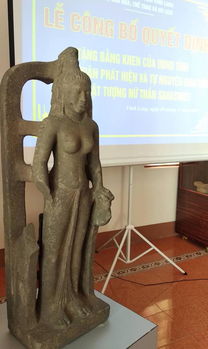 Hôm qua (9.11), Sở Văn hóa, Thể thao và Du lịch tỉnh Vĩnh Long đã tổ chức lễ công bố quyết định tặng bằng khen của UBND tỉnh Vĩnh Long cho cá nhân tự nguyện giao nộp cổ vật tư ợng nữ thần Saraswati.