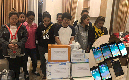 Các đối tượng bị bắt quả tang khi đang thực hiện các cuộc gọi về Trung Quốc, qua đó, cơ quan chức năng thu giữ nhiều máy tính, điện thoại liên quan đến hành vi phạm tội của các đối tượng.