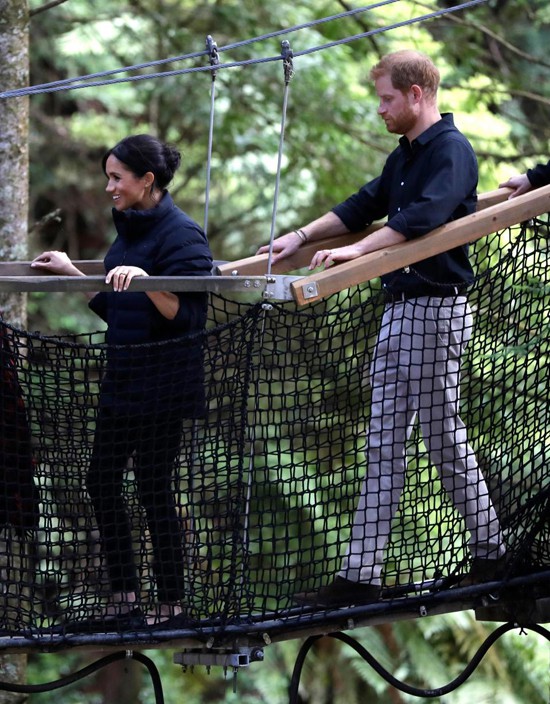 Vợ chồng Meghan - Harry trong chuyến thăm rừng ở New Zealand hồi cuối tháng 10. Ảnh: AP.