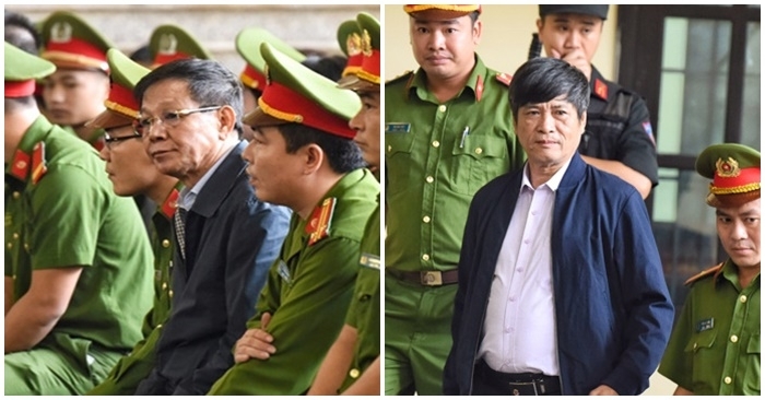 Cựu tướng Phan Văn Vĩnh và Nguyễn Thanh Hóa tại phiên tòa sáng 12/11. (Ảnh: ****)