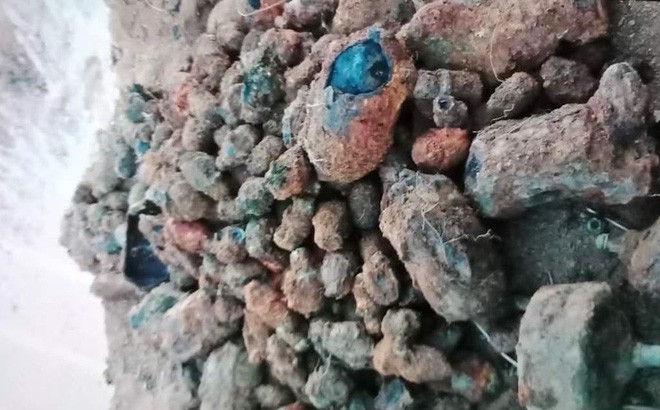 Khi đang đào đất, chủ nhà phát hiện có rất nhiều vật liệu nổ như trên.