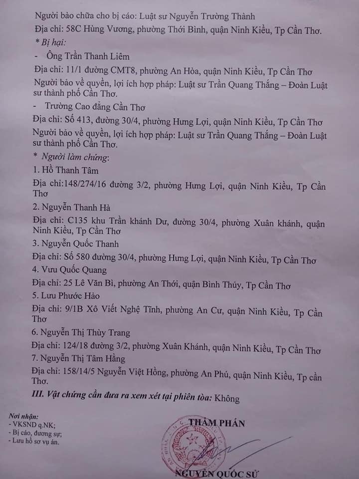 Theo cáo trạng, ngày 18.9.2016, ông Kiệt sử dụng mạng xã hội tự ý đăng tin và Quyết định bổ nhiệm ông Hồ Thanh Tâm làm Phó hiệu trưởng trường và khẳng định việc bổ nhiệm ông Tâm là không đúng quy trình.