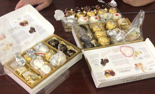 Tang vật thu giữ gồm 3 hộp giấy, bên trong có nhiều viên hình tròn chứa tinh thể màu trắng được bọc bằng giấy bạc giả như viên kẹo socola, trọng lượng tinh thể là 25,56 gam.