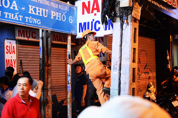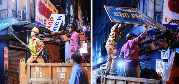 Tấm biển nhanh chóng được lệnh gỡ xuống để xe cẩu vào hẻm