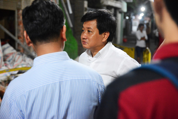 Ông Đoàn Ngọc Hải cũng trực tiếp có mặt để xem xét hiện trường, thăm hỏi người dân trong con hẻm