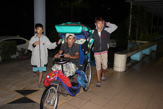 Anh Đỗ Hoàng Hải, làm nghề bán vé số cho biết nhận được thông tin từ người dân, lại không có chỗ ở nên ba cha con đã đội mưa đến để xin tá túc nhờ. "Khi đi chúng tôi cũng không biết khách sạn còn phòng hay không nên không dám rủ nhiều, đến thấy còn chỗ rộng rãi, sạch sẽ nên tôi có gọi thêm mấy người bạn cũng bán vé số đến để ở chứ không lang thang ngoài trời rất nguy hiểm" - anh Hải chia sẻ.