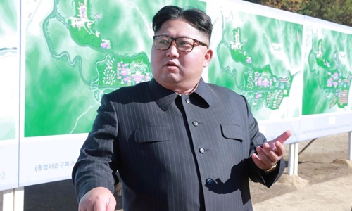 Lãnh đạo Triều Tiên Kim Jong-un tới thăm một công trường xây dựng ở Yangdeok trong bức ảnh không rõ ngày tháng do KCNA công bố ngày 31/10. Ảnh: KCNA.