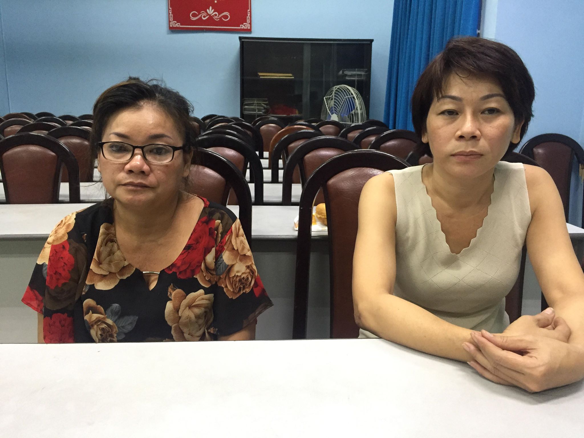 Huyền và Chi tại cơ quan công an. Ảnh: C.T