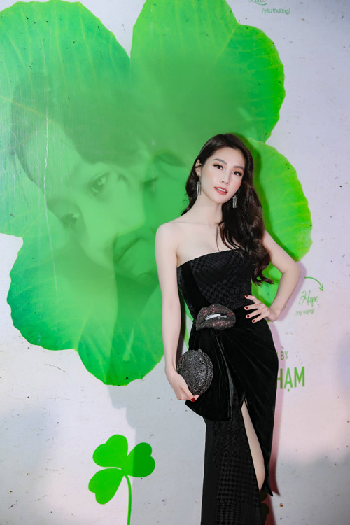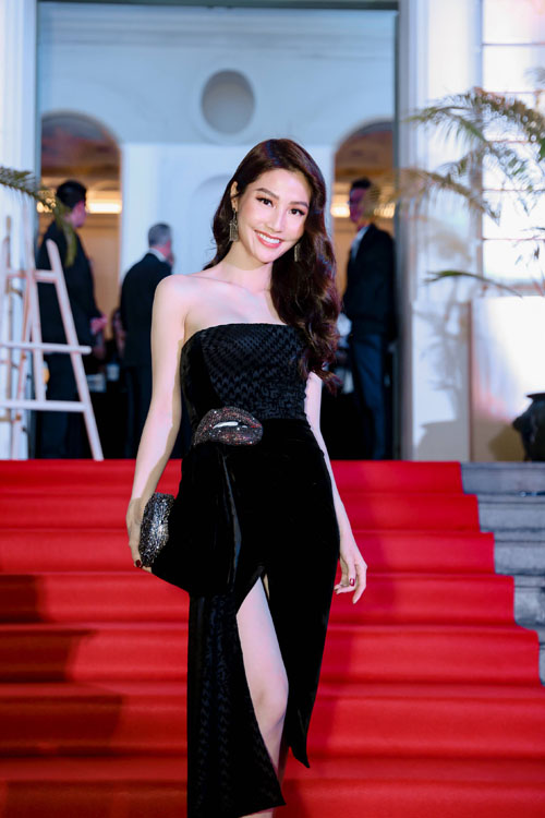 Diễm My 9x diện trang phục màu đen trang nhã, thanh lịch để tham dự hoạt động thiện nguyện kêu gọi gây quỹ cho trẻ em mắc bệnh tim hiểm nghèo Scar of Life – Vết sẹo cuộc đời diễn ra ở Lãnh sự quán Pháp tại TP.HCM.