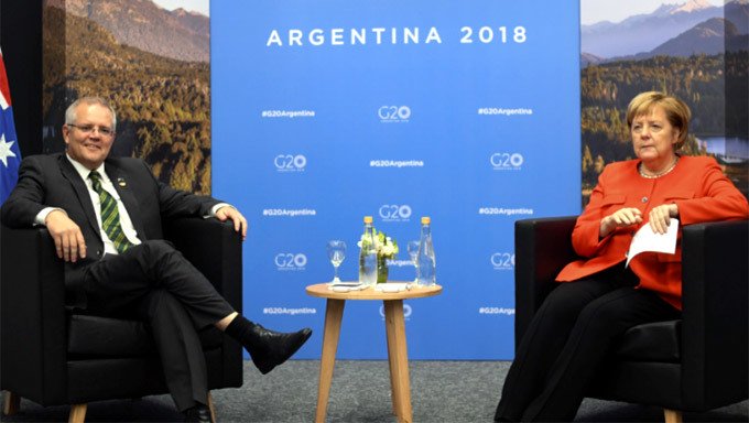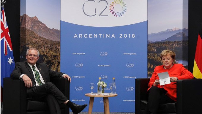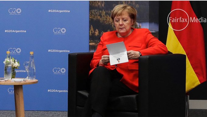 Tại cuộc gặp người đồng cấp Australia Scott Morrison bên lề hội nghị thượng đỉnh G20 ở Buenos Aires, khiến Thủ tướng Đức Angela Merkel đã có một hành động gây tranh cãi, sau khi bị "bắt quả tang" bà erke đang đọc lại tập ghi chú về ông Morrison ngay trước mặt ông.