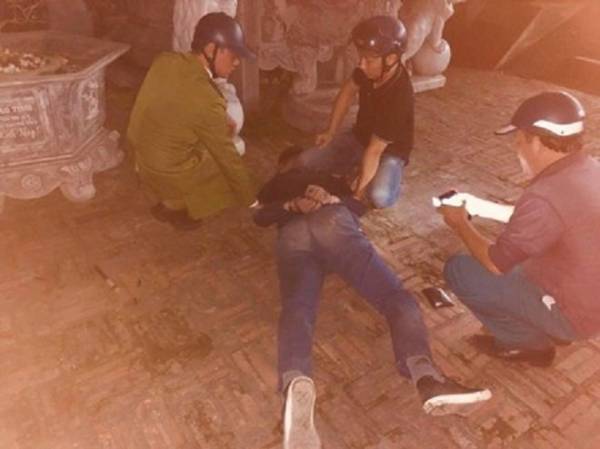Công an bắt giữ đối tượng có biểu hiện không bình thường xả súng liên hoàn trong chùa.