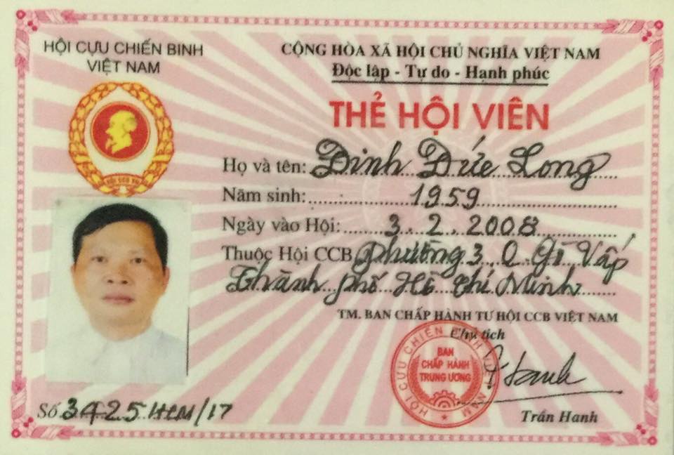 Tin Sài Gòn, Việt Nam – Vào lúc 3 giờ chiều ngày 9 tháng 12 năm 2018, bác sĩ Đinh Đức Long, sống tại Sài Gòn đã tuyên bố từ bỏ hội Cựu chiến binh của đảng CSVN, vì cho rằng đây là một tổ chức bù nhìn, là cánh tay nối dài của đảng CSVN.