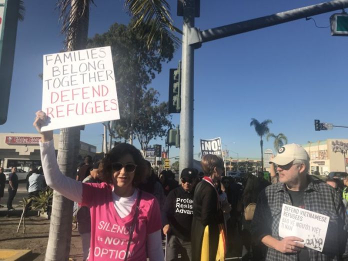Hàng trăm người xuống đường tham dự biểu tình ‘Bảo vệ người Việt tị nạn’ tại trung tâm Little Sai Gon, phía trước khu thương mại Phước Lộc Thọ với hầu hết là thế hệ người Việt thứ nhất tới Mỹ từ khi còn nhỏ theo cha mẹ trong hành trình đi tị nạn. Ngoài ra, cũng có một số người lớn tuổi và trẻ em tham dự.