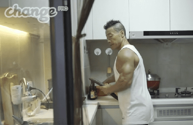 Yang Xinmin thường tự tay nấu nướng, chuẩn bị bữa ăn cho mình
