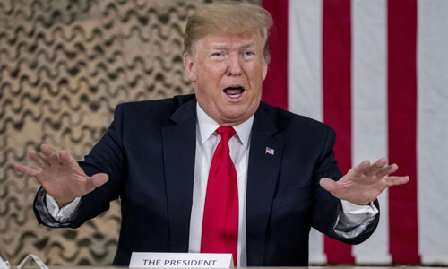 "Họ gần đây lại xin thêm thời gian, nhưng tôi nói không. Các ông không thể có thêm thời gian, vì đã có quá đủ rồi. Chúng ta đã đánh bại chúng", Trump nói với các binh sĩ. "Những nước khác cũng phải làm vậy. Lẽ ra họ phải chia sẻ gánh nặng chi phí với Mỹ, nhưng họ không chịu".