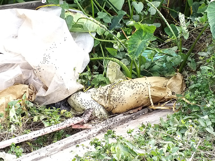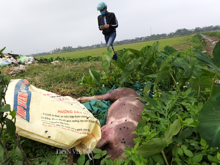 Bãi rác bên đường vào chợ đầu mối gia súc, gia cầm Hà Nam xuất hiện các xác lợn chết bị vứt đã bắt đầu phân hủy...