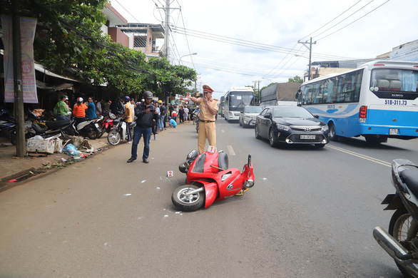 Sau tai nạn, Công an TP Bảo Lộc đã có mặt khám nghiệm hiện trường, điều tiết giao thông và điều tra nguyên nhân vụ việc.