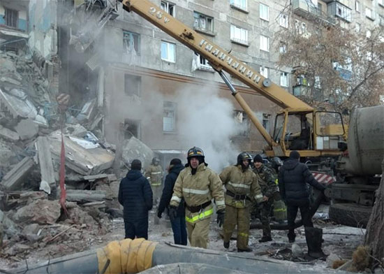 Một vụ nổ khí gas đã làm tòa chung cư 48 căn hộ với 110 người sinh sống đổ sập tại thành phố Magnalsogorsk hôm nay (31/12). 469 nhân viên và 66 thiết bị đã được huy động để tìm người sống sót đang kêu cứu dưới đông đổ nát.