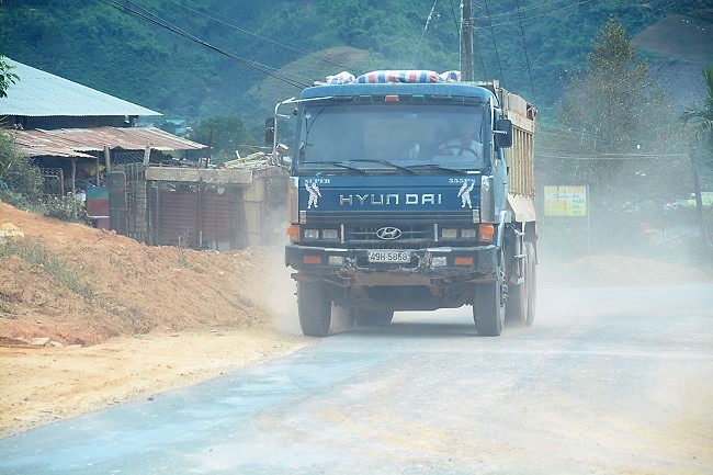Sử dụng xe ben hết hạn sử dụng, vận chuyển đất đai quá khổ và không che chắn khiến đất đai vương vãi khắp đường, gây bụi bặm, thuộc QL27, đoạn qua ngã Ba Huế, xã Đạ K’Nằng, huyện Đam Rông, gây ảnh hưởng rất lớn đến người dân địa phương.