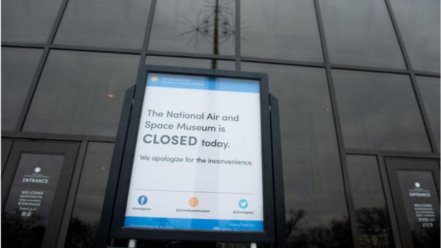 Tại Washington, 17 bảo tàng do Viện Smithsonian quản lý cũng như sở thú quốc gia đã cửa đóng then cài sau khi dùng hết quỹ khẩn cấp. Du khách tới thăm quan chỉ có thể đứng ngoài và họ tức giận với các chính trị gia mọi đảng phái ở Mỹ.