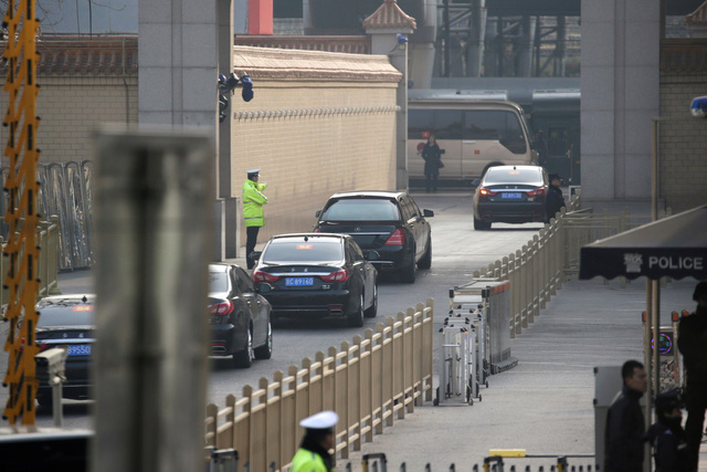 Chiếc limousine chở ông Kim Jong-un và các xe hộ tống tiến vào nhà ga Bắc Kinh.