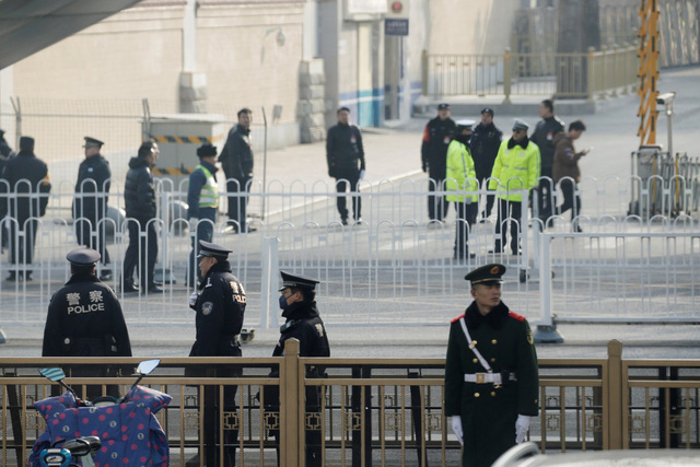Nhiều cảnh sát được huy động tại khu vực nhà ga Bắc Kinh để bảo đảm an ninh cho đoàn xe chở ông Kim Jong-un.