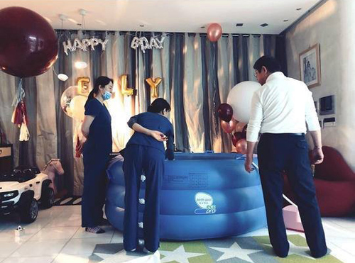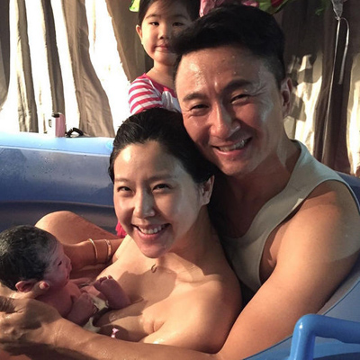 Những khoảnh khắc chồng, hai con của mỹ nhân Lee Yoon Mi đều có mặt giúp đỡ, động viên cùng cô vào bồn nước khi đón con gái thứ ba chào đời, vì đây là lần thứ ba mỹ nhân "vượt cạn" bằng phương pháp đẻ con dưới nước đã được "mẹ tròn con vuông".