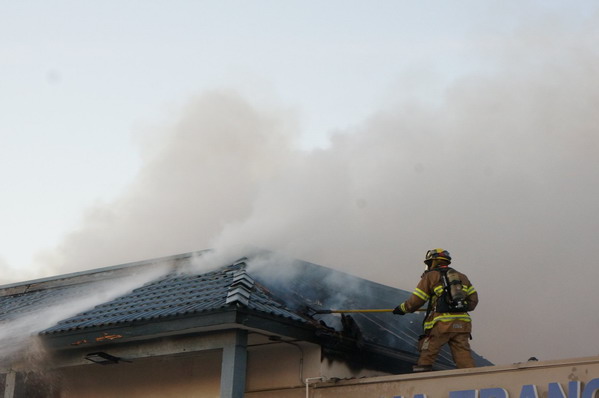 Đến 5 giờ chiều thì tiệm Tiếng Thu đã cháy rụi. Lính cứu hỏa được thấy xịt vòi rồng trên nóc của tiệm LD Auto Services.