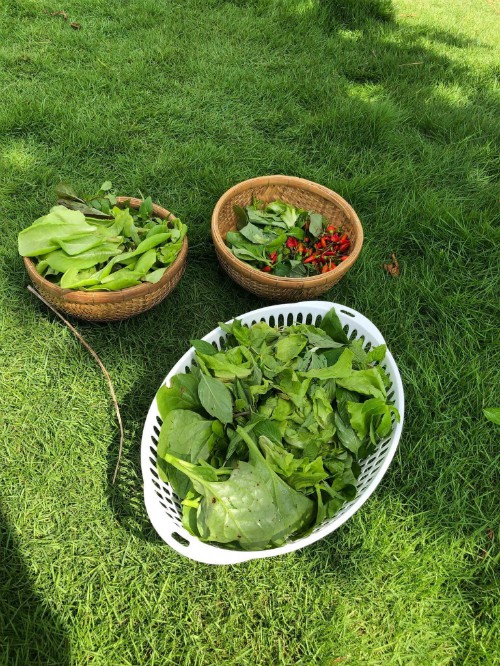 Khu vườn được quy hoạch để trồng rất nhiều loại cây leo giàn, rau ăn lá hàng ngày do vậy gia đình thường xuyên có rau ăn.