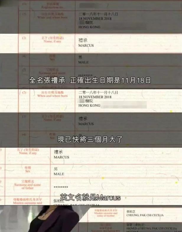 Mới đây, netizen xứ Trung lại tiếp tục đổ dồn sự chú ý vào Trương Bá Chi khi con trai Tiểu Vương Tử của cô bị lộ giấy khai sinh. Theo như trong giấy khai sinh viết rõ thì Tiểu Vương Tử sinh ngày 18/11/2018, có tên tiếng Anh là Marcus và tên tiếng Trung là Trương Lễ Thừa.