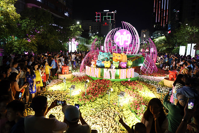 Old  Default Đường hoa xuân Nguyễn Huệ đón "biển người" xem heo đội nón lá, khăn rằn