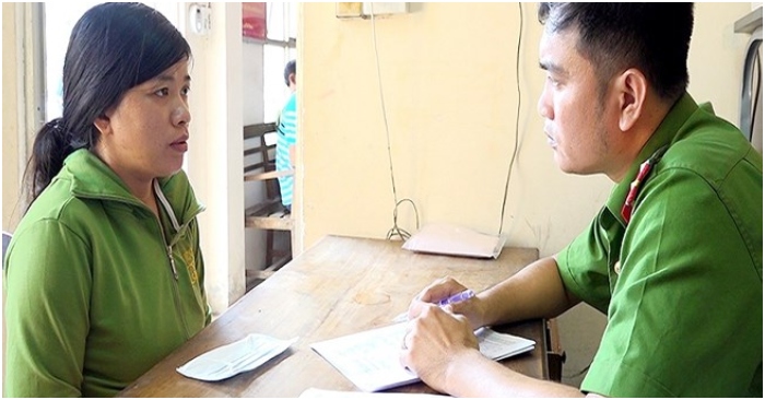 Nguyễn Thị My My tại cơ quan công an. (Ảnh: PLO)